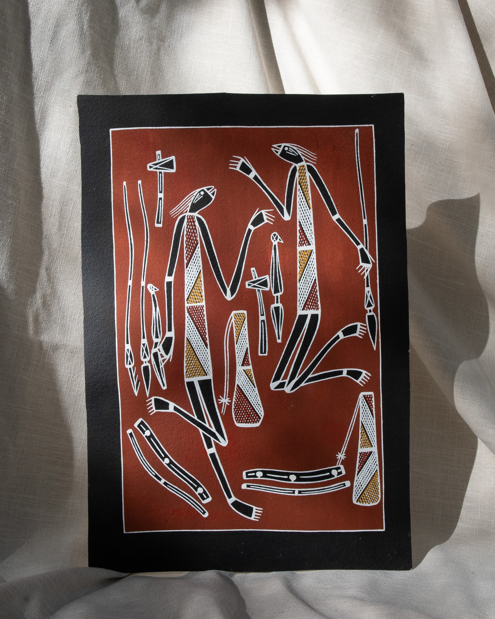 This artwork has been purchased directly from an Aboriginal artist in Kakadu National Park or Arnhem Land. Warradjan Cultural Centre is committed to supporting artists, their families and the local community.