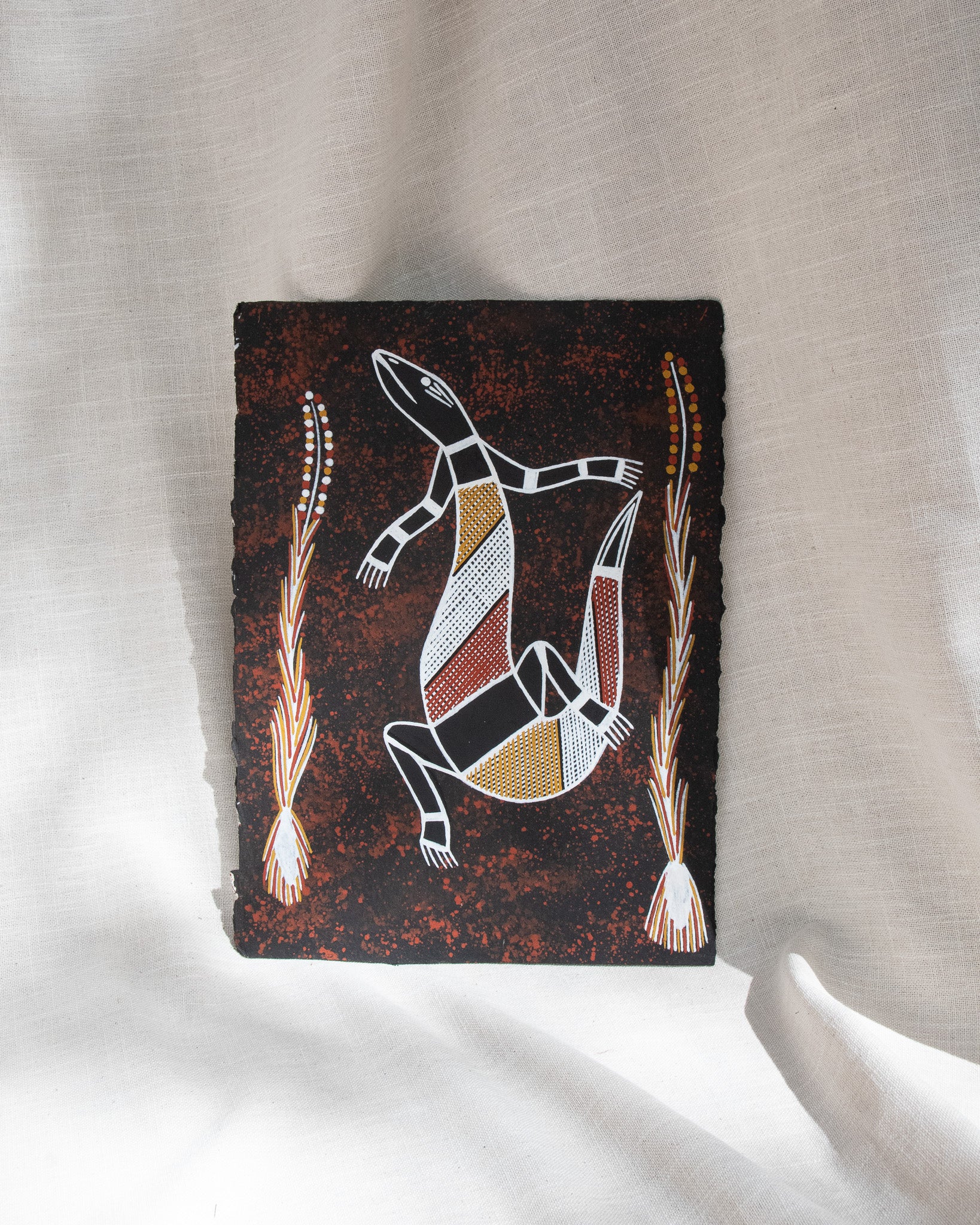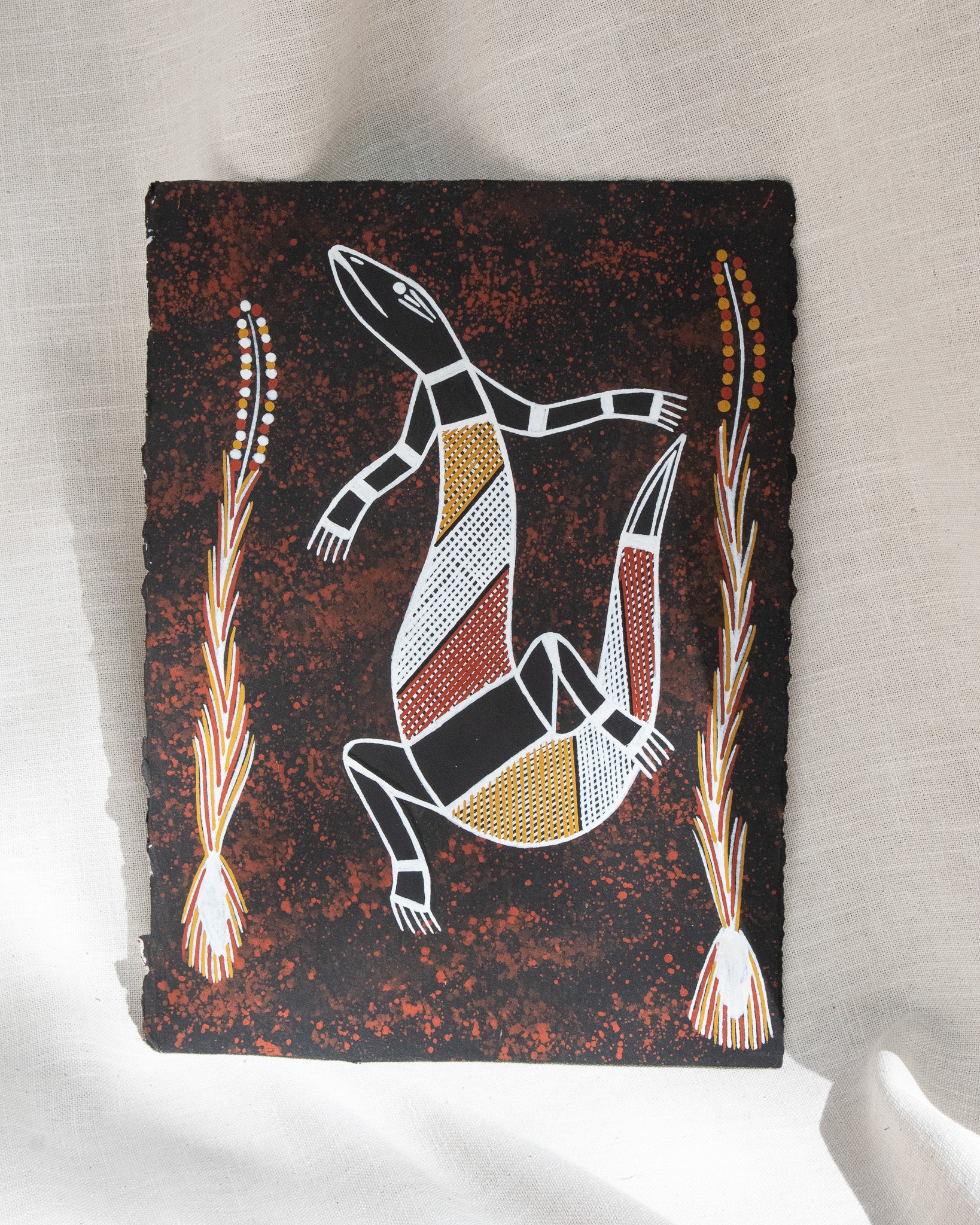 This artwork has been purchased directly from an Aboriginal artist in Kakadu National Park or Arnhem Land. Warradjan Cultural Centre is committed to supporting artists, their families and the local community.