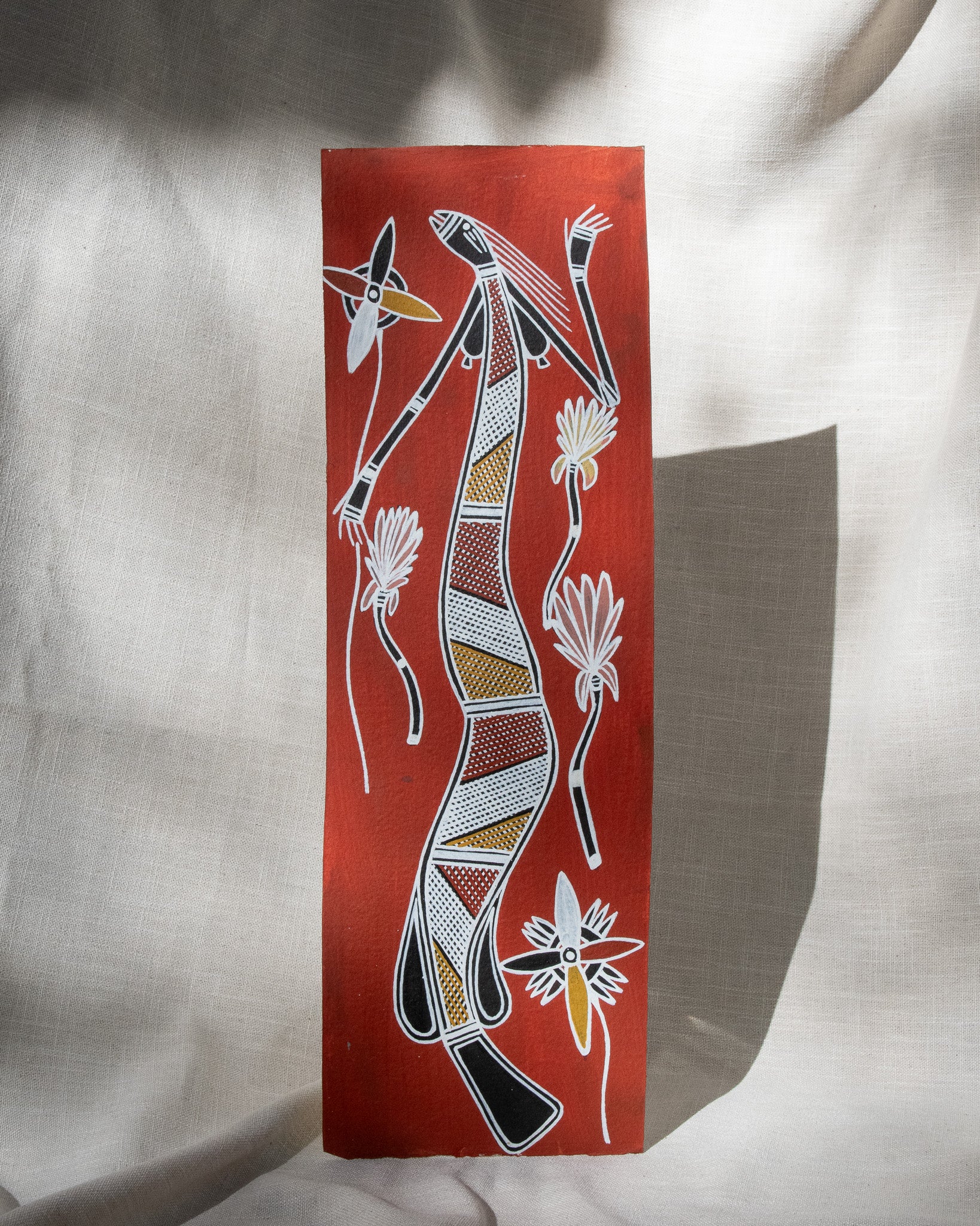 This artwork has been purchased directly from an Aboriginal artist in Kakadu National Park or Arnhem Land. Warradjan Cultural Centre is committed to supporting artists, their families and the local community.