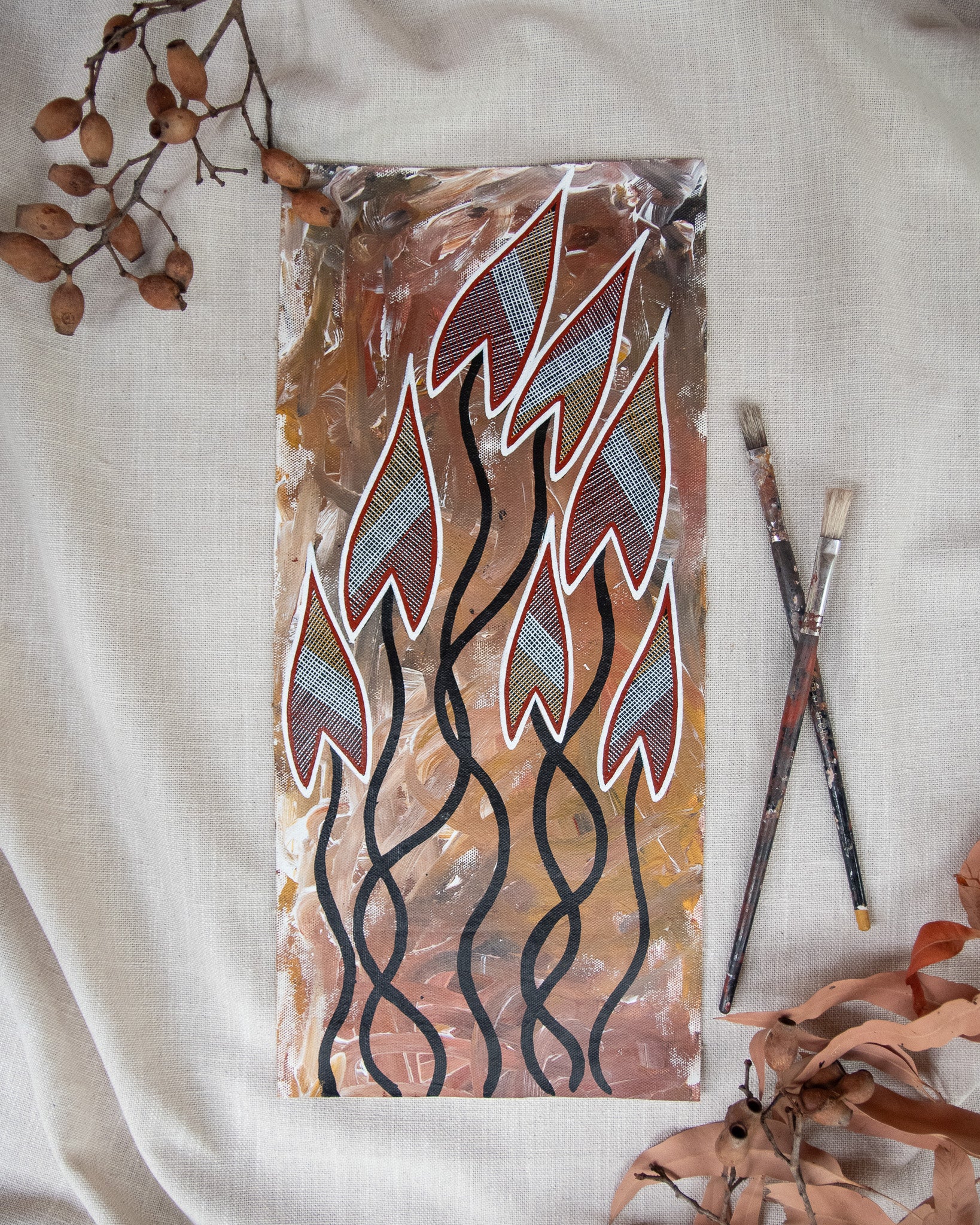 This artwork has been purchased directly from an Aboriginal artist in Kakadu National Park or Arnhem Land. Warradjan Cultural Centre is committed to supporting artists, their families and the local community.